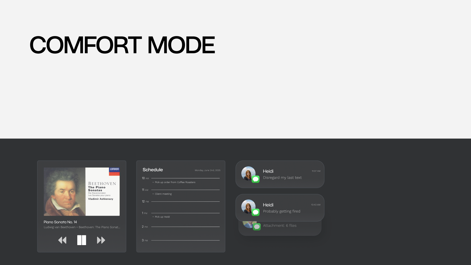 Comfort Mode: Shared control | Schedules and messages | Balanced UI